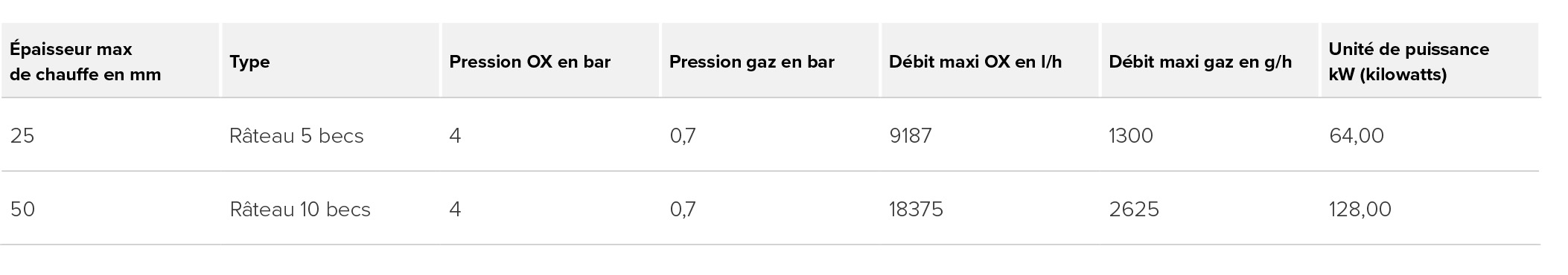 Le râteau de chauffe est composé de 10 becs multidards (débit de chaque bec 1000 l/h), inclinaison de la lance à la demande.